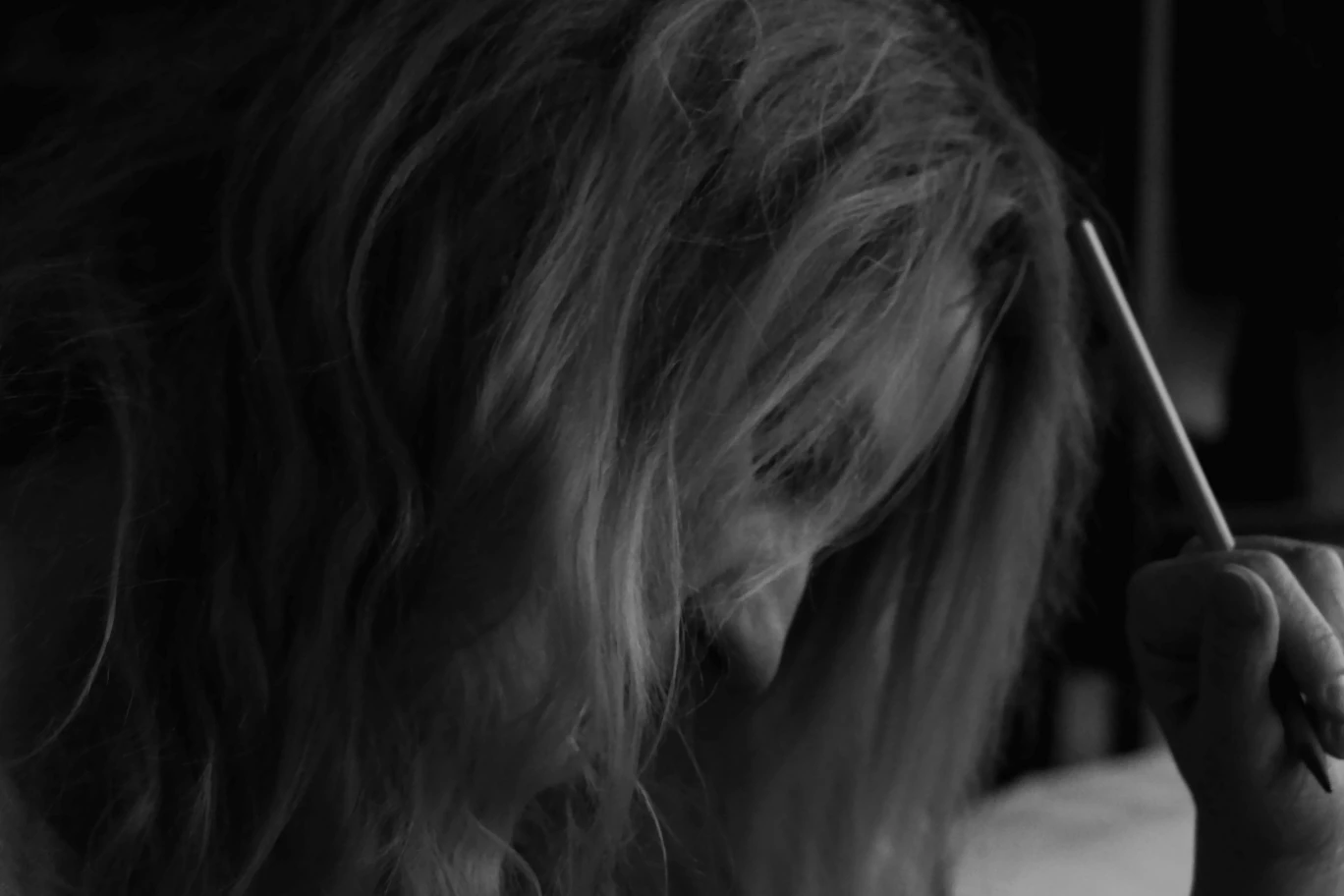 Poser mes couches de noirs en premier sur le papier au risque de salir les autres couleurs. Mais la réalité n’a rien de propre ni de parfait, après tout : le blanc est-il vraiment si blanc dans la réalité ?