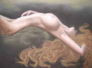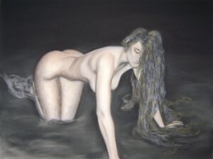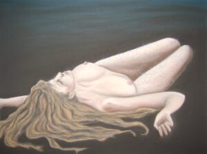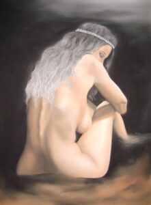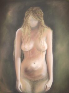 Oeuvres exécutées principalement à la craie d’art sèche pour un format allant du 29 x 39 au 50 X 65. Les fusains constituent pour beaucoup les esquisses de base pour les aquarelles et correspondent à de petits formats situés entre les types A4 et A5. Finition collage pour certaines aquarelles. Représentation du nu féminin essentiellement.