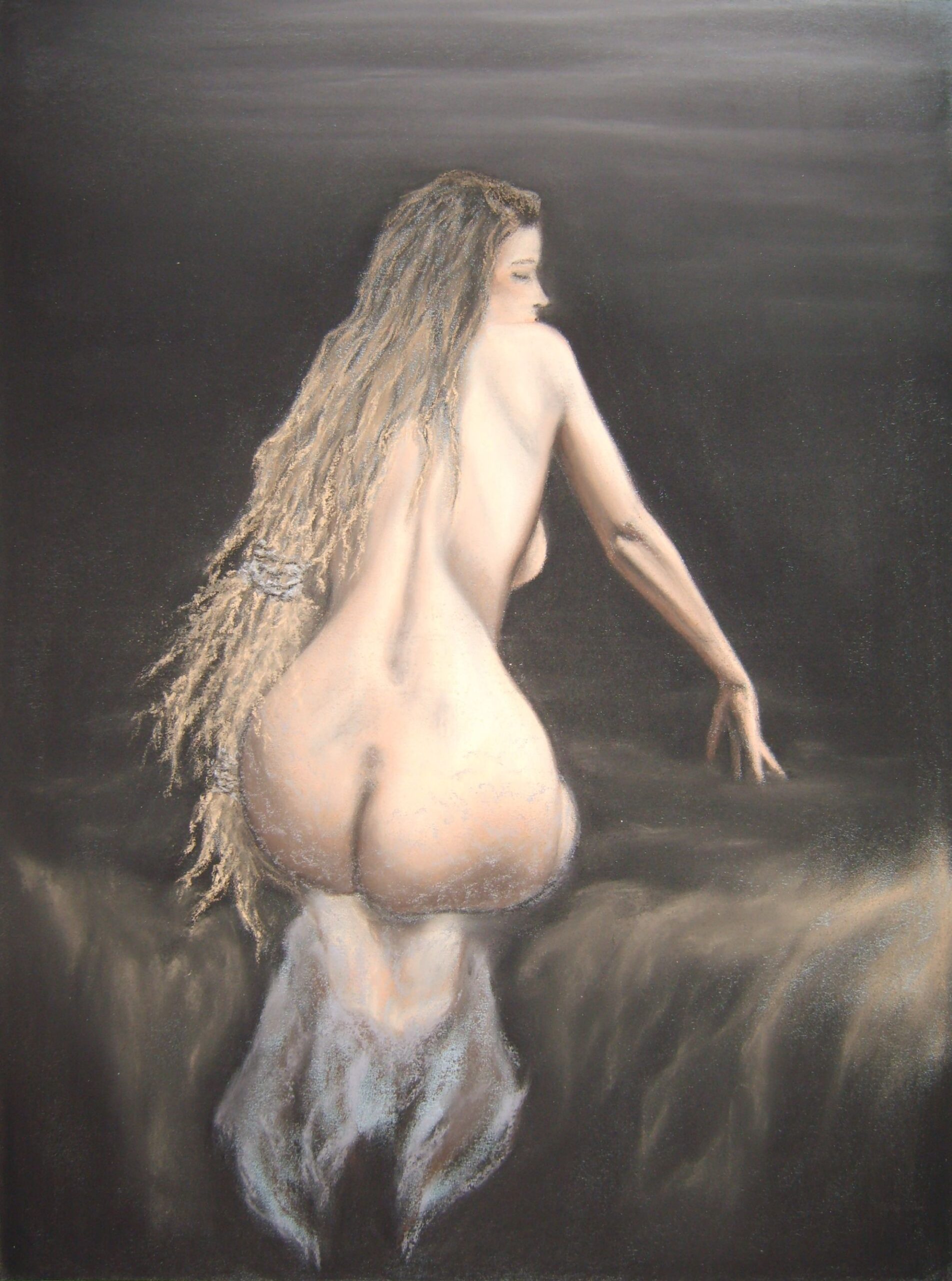 Oeuvres exécutées principalement à la craie d’art sèche pour un format allant du 29 x 39 au 50 X 65. Les fusains constituent pour beaucoup les esquisses de base pour les aquarelles et correspondent à de petits formats situés entre les types A4 et A5. Finition collage pour certaines aquarelles. Représentation du nu féminin essentiellement.